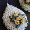 A white double Chrysanthemum based Horse Shoe Funeral Tribute with a ribbon edge, in a colour of your choice.